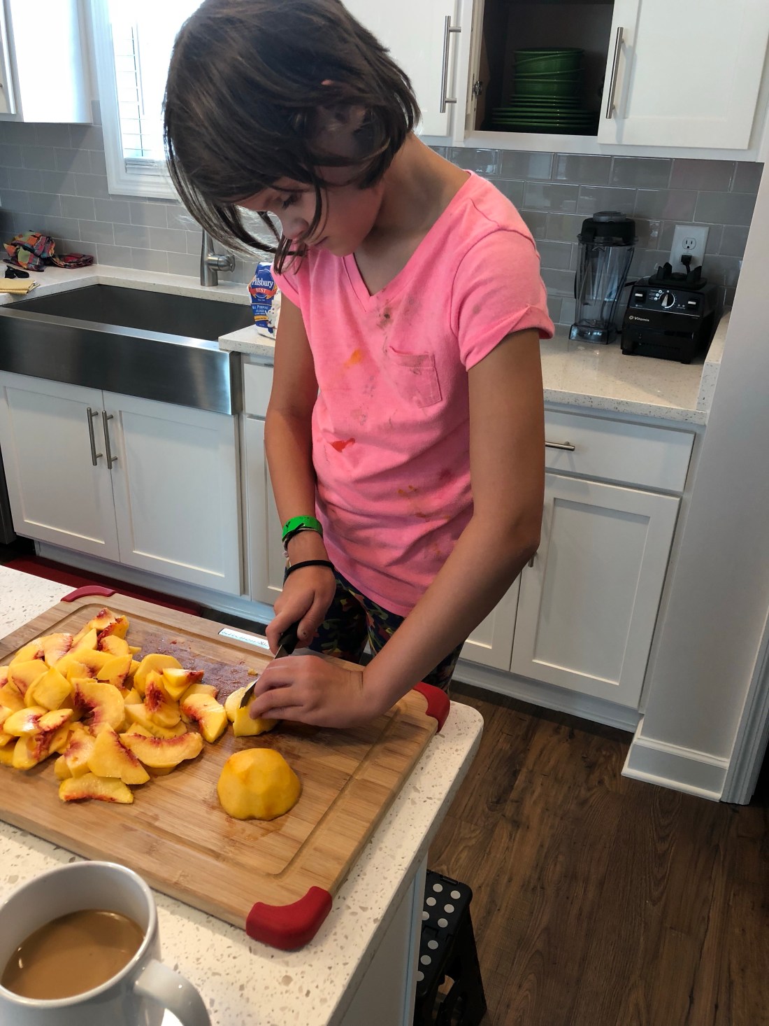 The most difficult part of this recipe is cutting the peaches. Slippery things, aren’t they?