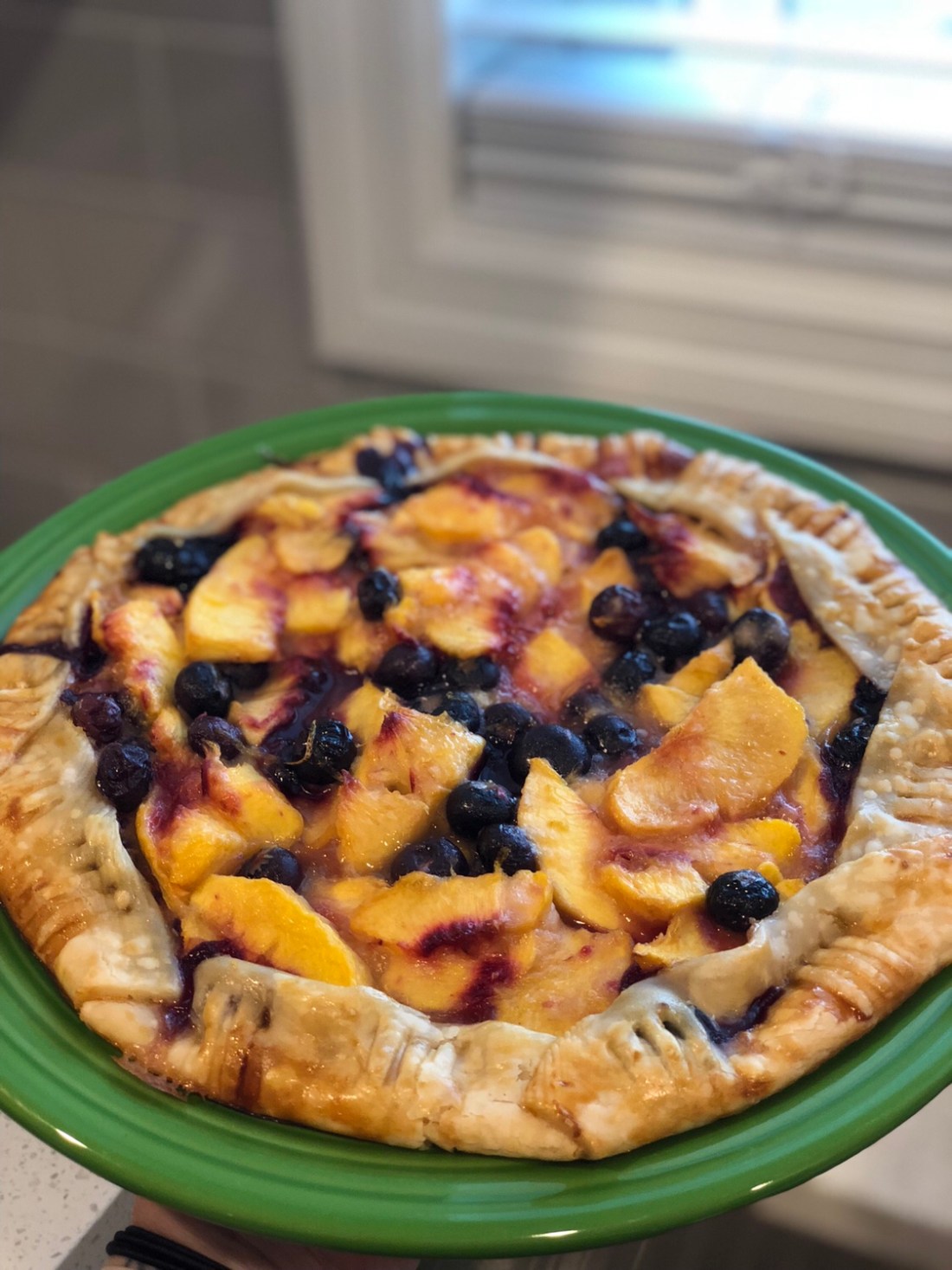 Never one to shy away from a little word-play, today’s recipe is a Blueberry Peach-za. You can be fancy and call it a galette if you want, but why would you now that you have heard of a peach-za?
